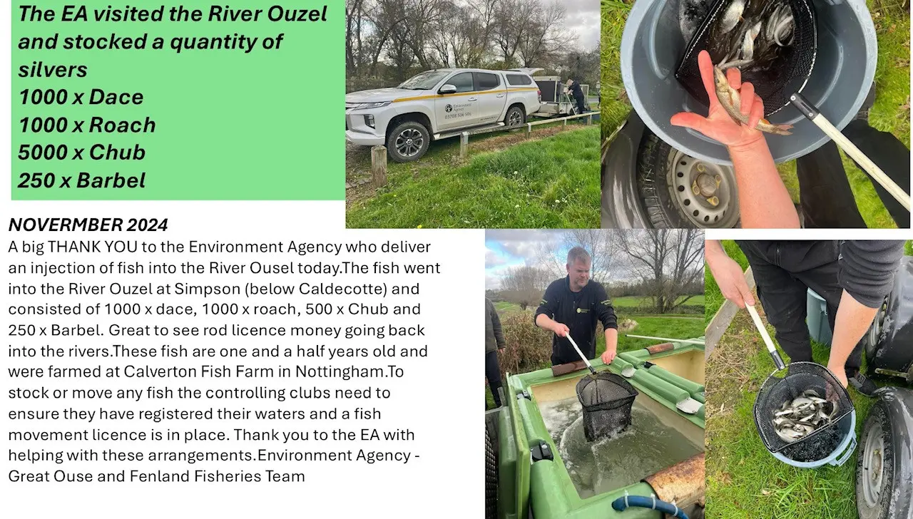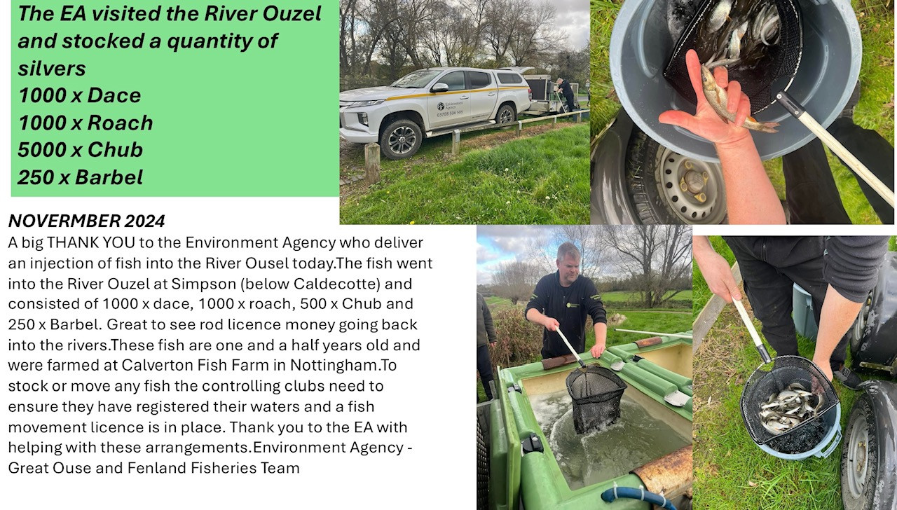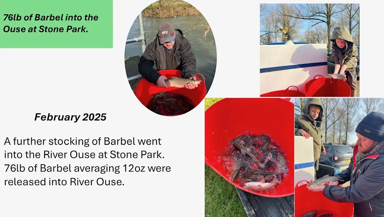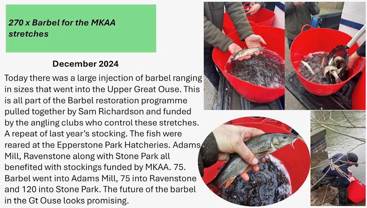 A year’s worth of fish stocking and over 30k spent on fish for MKAA Waters. A busy year and a real boost for many of our venues for now and thinking ahead for the future. We are committed to ensure our fisheries continue to offer excellent catches for our members regardless of whether you fish for silvers, carp or predators.